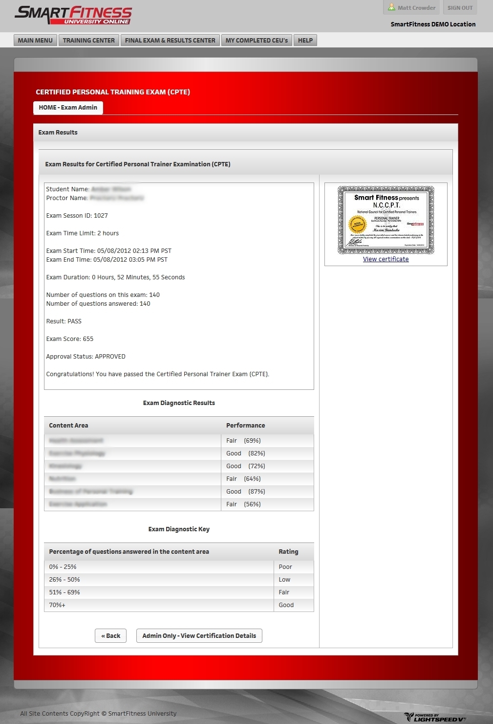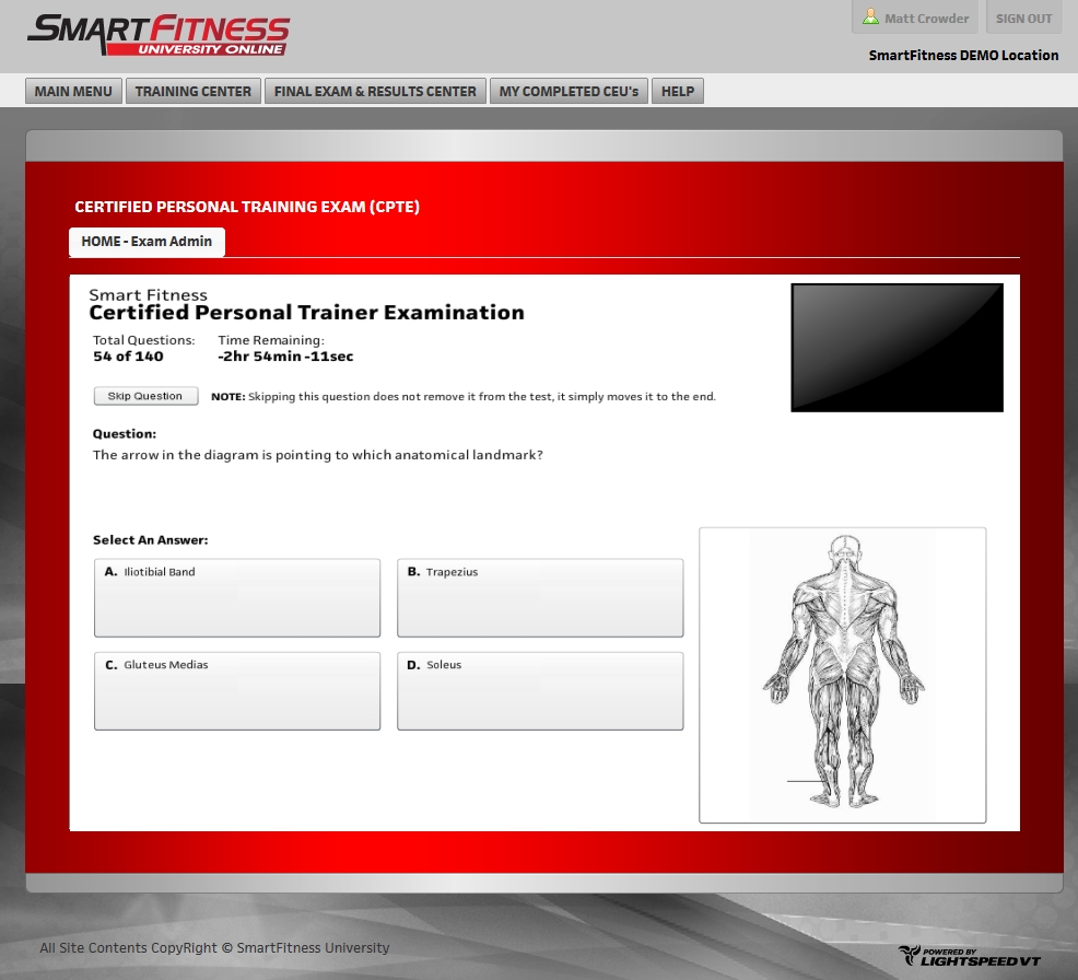For Lightspeed VT in Las Vegas, Nevada, we develop and maintain The SmartFitness Certified Personal Trainer Exam. The CPTE is a proprietary testing and certification system for personal trainers.